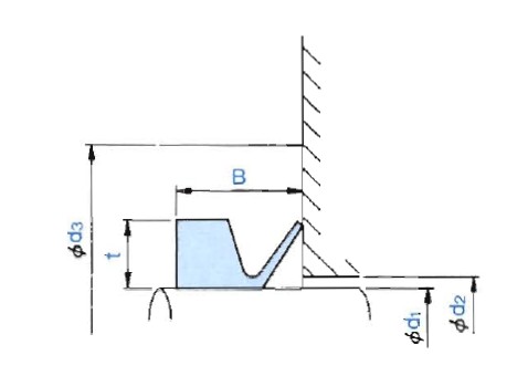VR形水封的尺寸經(jīng)常可以從一組直徑范圍內(nèi)選取,如軸的公稱直徑是處于兩組推薦值的邊界范圍外,則應(yīng)選用下一組較大的VR形水封。